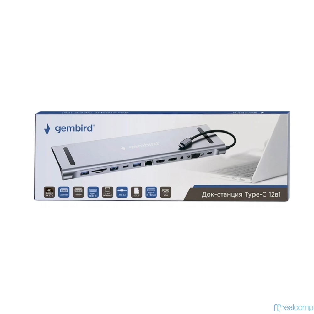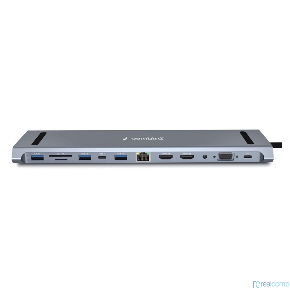 Gembird Док-станция Type-C,12в1: 2xUSB3.1,USB2.0, RJ45,PD87W, Jack3.5, SD/TF, 2xHDMI, VGA,Type-C (UHB-D6)