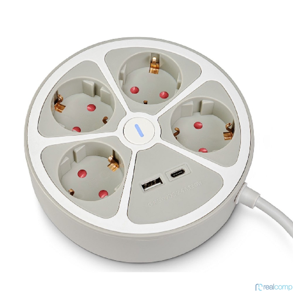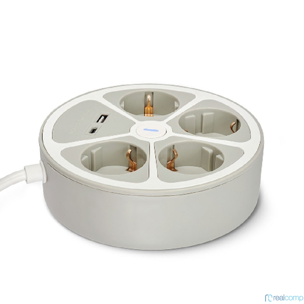 RITMIX RM-341C White Сетевой фильтр, удлинитель {4 евророзетки 16A, 1 USB-A, 1 USB-C, суммарно до 2.4А, 3 м, евровилка с заземлением } {80004157}