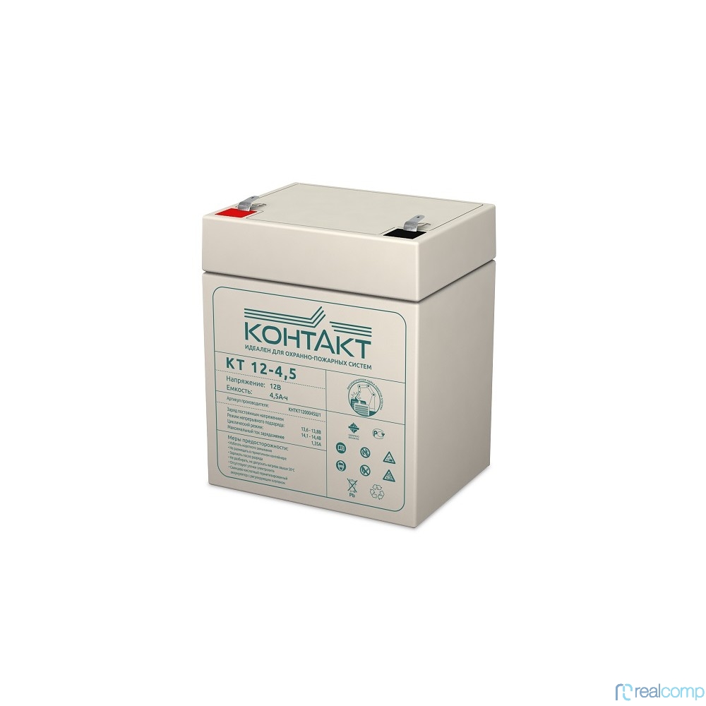 Контакт АКБ КТ 12-4,5 12V/4,5Ah {клемма Ш-4,8 (F1), ДхШхВ 90х70х107мм, масса 1,23 кг, срок службы 5-7 лет}