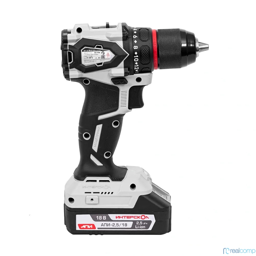 ИНТЕРСКОЛ ДА-13/18В 55 бесщеточная аккум. дрель-шуруп. Li-ion АПИ [952.2.2.70] { кейс, 2 аккум. 2,5Ач, ЗУ }