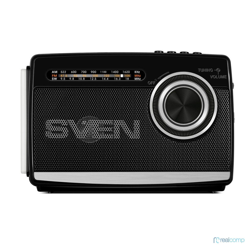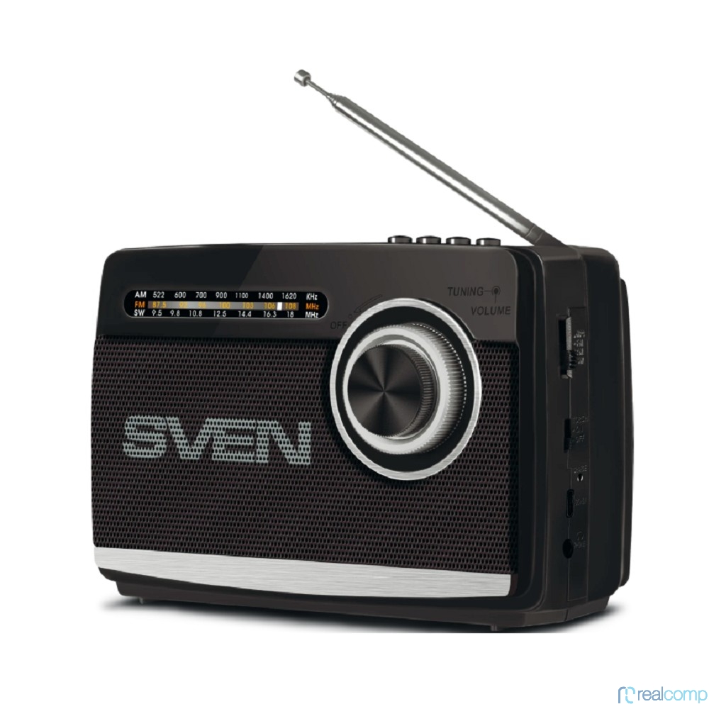 SVEN АС SRP-155, чёрный (3 Вт, Bluetooth, FM/AM/SW, USB, microSD, фонарь, встроенный аккумулятор)