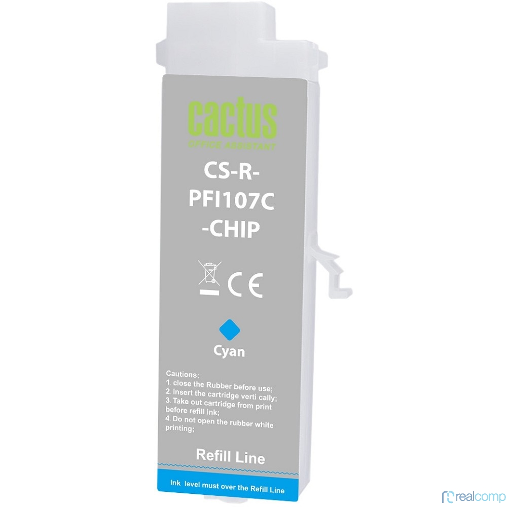 Картридж перезаправляемый струйный Cactus CS-R-PFI107C-CHIP голубой для Canon imageProGRAF iPF670/680/685/770/780/785