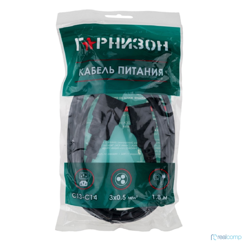 Гарнизон Кабель питания C13-C14, 3x0.5мм2, 6А, CCA, с заземлением, 1.8м, черный, пакет (GPC-189-0.5-1.8M)