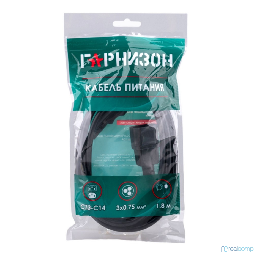 Гарнизон Кабель питания C13-C14, 3x0.75мм2, 10А, CCA, с заземлением, 1.8м, черный, пакет (GPC-189-0.75-1.8M)