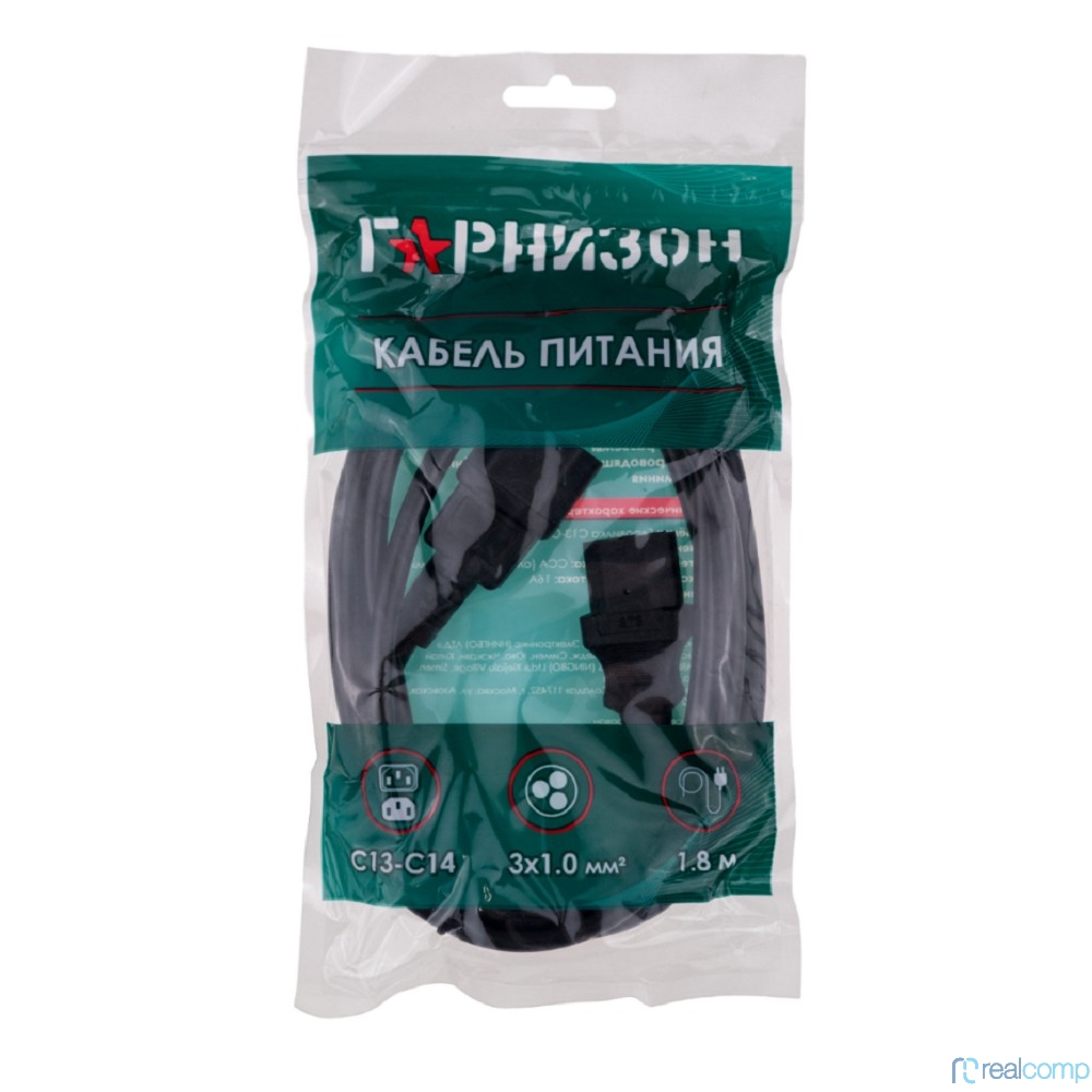 Гарнизон Кабель питания C13-C14, 3x1.0мм2, 16А, CCA, с заземлением, 1.8м, черный, пакет (GPC-189-1-1.8M)