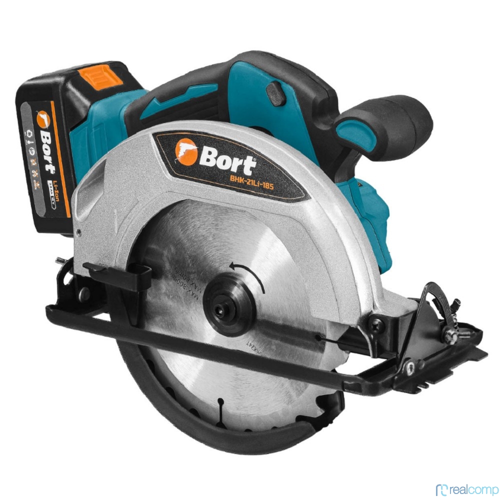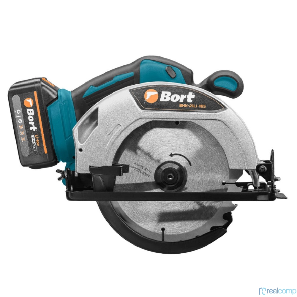 Bort BHK-21LI-185 ПИЛА ЦИРКУЛЯРНАЯ АККУМУЛЯТОРНАЯ [93418590] {акб 2*3,0 АЧ + ЗУ, АКБ Makita 18V LXT, 0-3800 об/мин, диск 185 мм, 20 мм, 3 кг, аксессуаров 2 шт }
