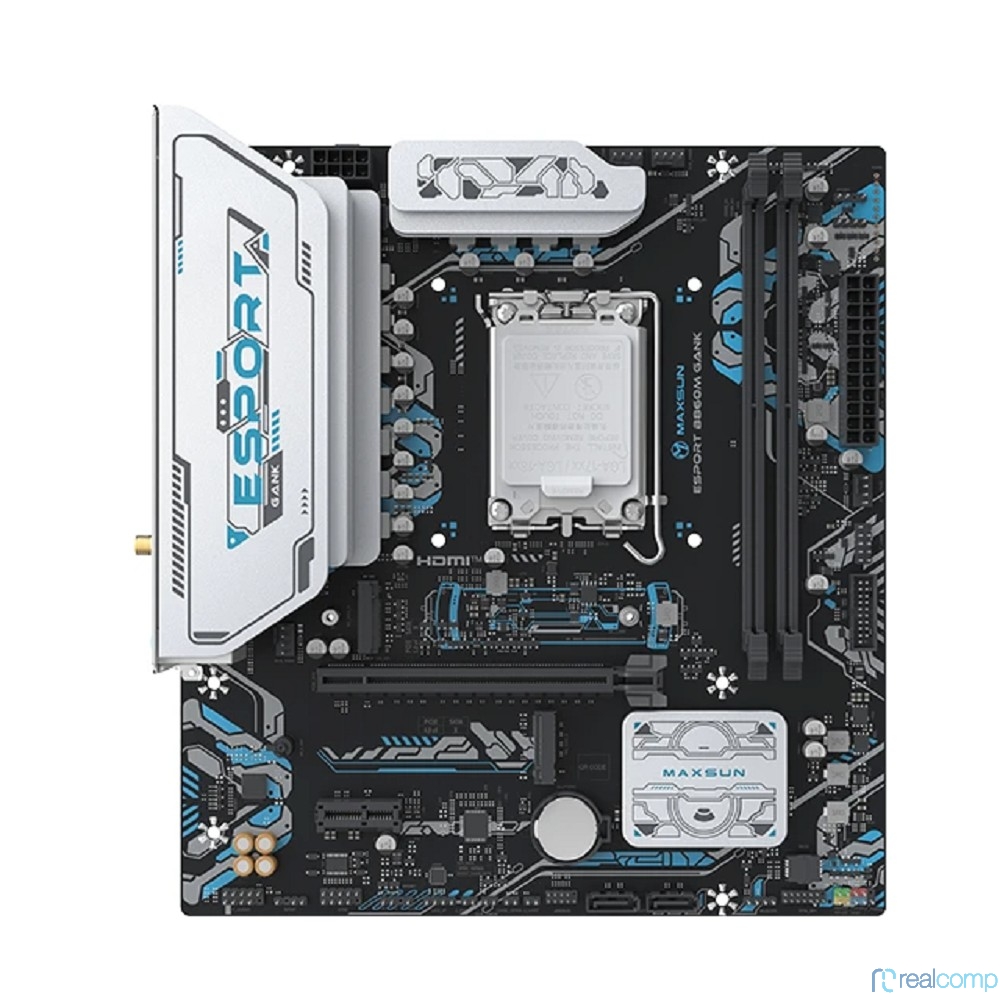 MAXSUN MS-eSport B860M GANK WIFI (Socket 1851, mATX, 2*DDR5(96Gb), DP/HDMI, 2xSATA3, 2*M.2,xPCI-Ex16 xPCI-Ex1, 2*USB 2.0, 4*USB 3.2, LAN 1*1G, Bluetooth, Wi-Fi6, ARGB, RTL)