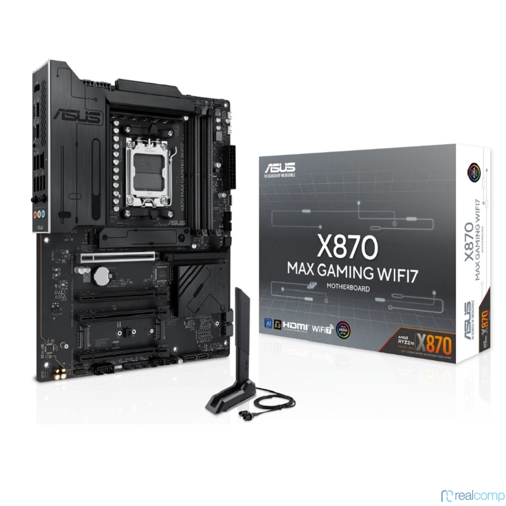 ASUS X870 MAX GAMING WIFI7 (Socket AM5, ATX, 4xDDR5(256GB), HDMI, 1xPCIe 5.0x16/2xPCIe 4.0x16/xPCIe 3.0x16, 1xLAN (2.5GbE), Wi-Fi 7, BT, 4xSATA 6Gb/s, 3xM.2, 2xUSB4 Type-C, 4xUSB 3.2, 4xUSB 2.0)