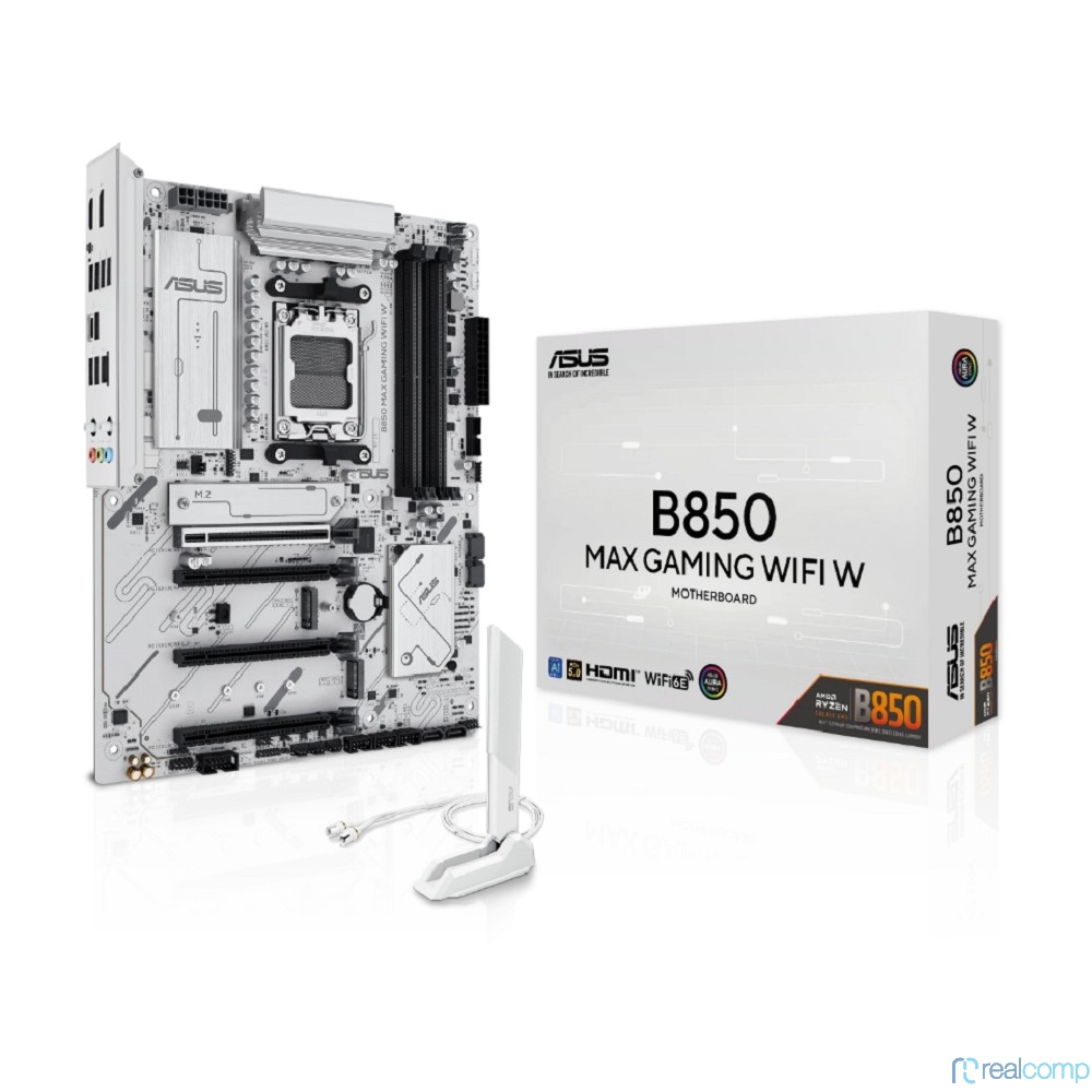 ASUS B850 MAX GAMING WIFI W (Socket AM5, ATX, 4xDDR5(256GB), DP/HDMI 2.1, 1xPCIe 5.0x16/1xPCIe 4.0x16/2xPCIe 3.0x16, 1xLAN (2.5GbE), Wi-Fi, BT, 4xSATA 6Gb/s, 3xM.2, 1*Type-C, 5xUSB 3.2, 2xUSB 2.0)