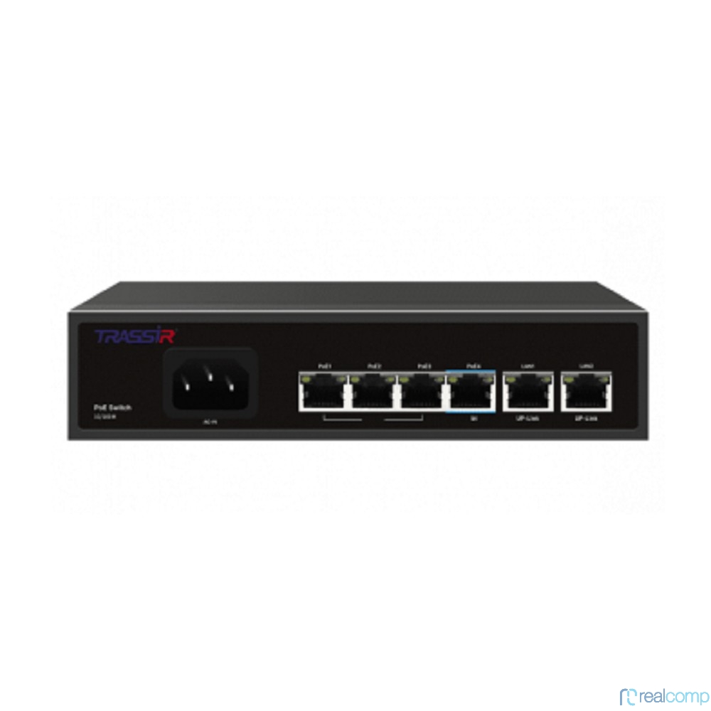 Коммутатор неуправляемый TRASSIR TR-NS1206-65-4PoE Fast Ethernet РоЕ оснащен 4 РоЕ-портами RJ-45 и 2 uplink-портами 10/100 Мбит/с