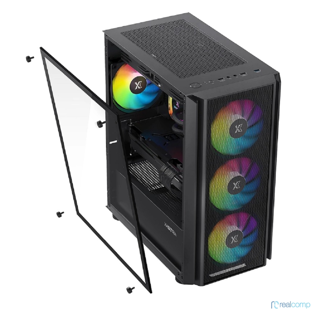 XASTRA Корпус A402M 4FRGB Black mATX/Mesh/full-size TG/4x120mm FRGB fans/ A402M-4FC12F-BK