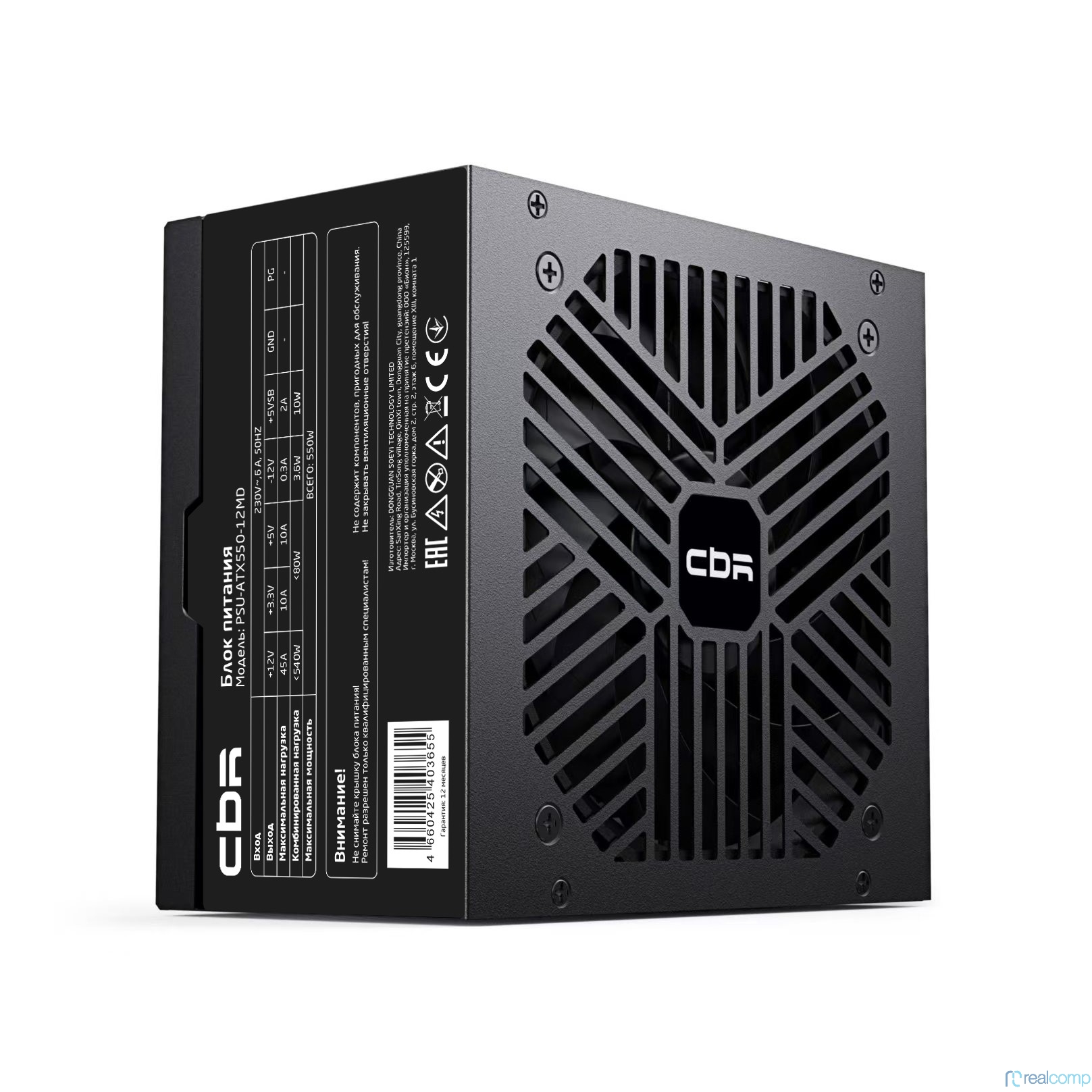 Блок питания CBR ATX 550W, 12cm fan, 24pin, 1*4+4pin, 1*6+2pin, 2*IDE, 3*SATA, кабель питания 1.2м, черный [PSU-ATX550-12MD] OEM