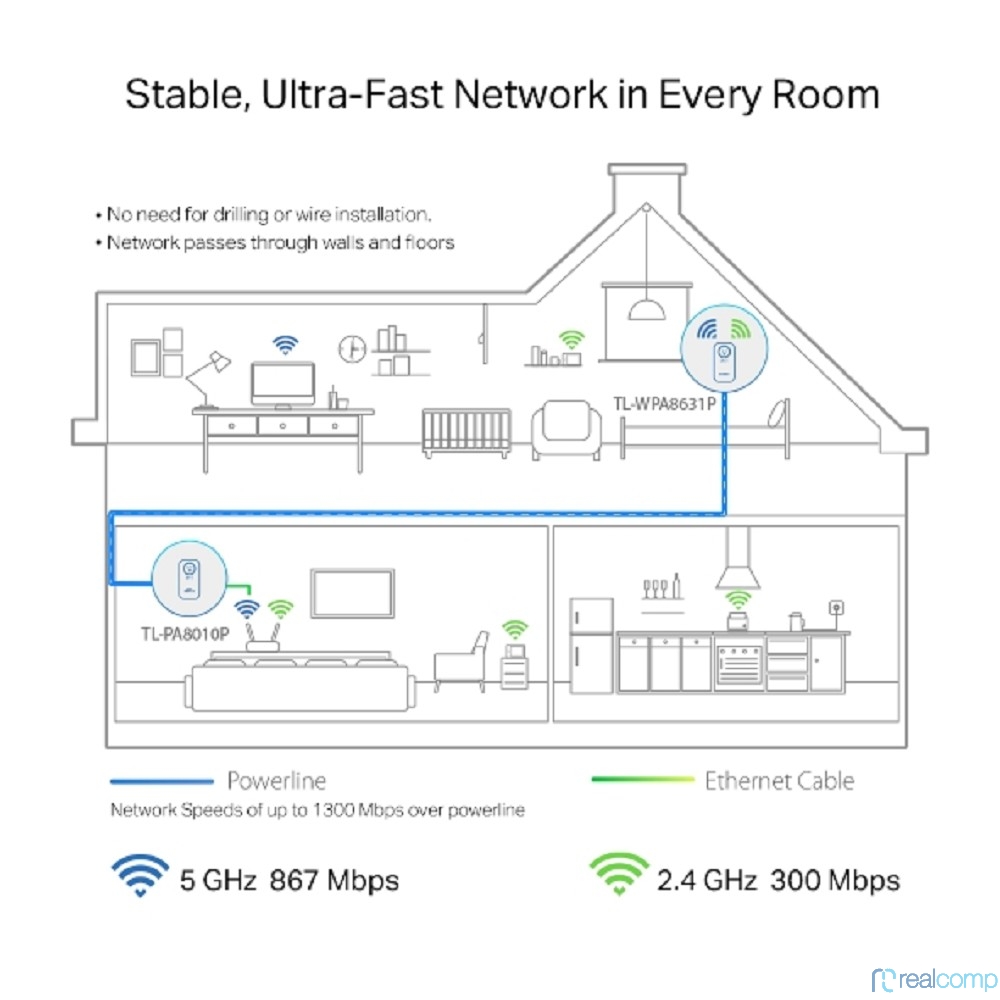 TP-Link TL-WPA8631P KIT AV1300 Комплект двухдиапазонных гигабитных Powerline-адаптеров с Wi-Fi и встроенной розеткой