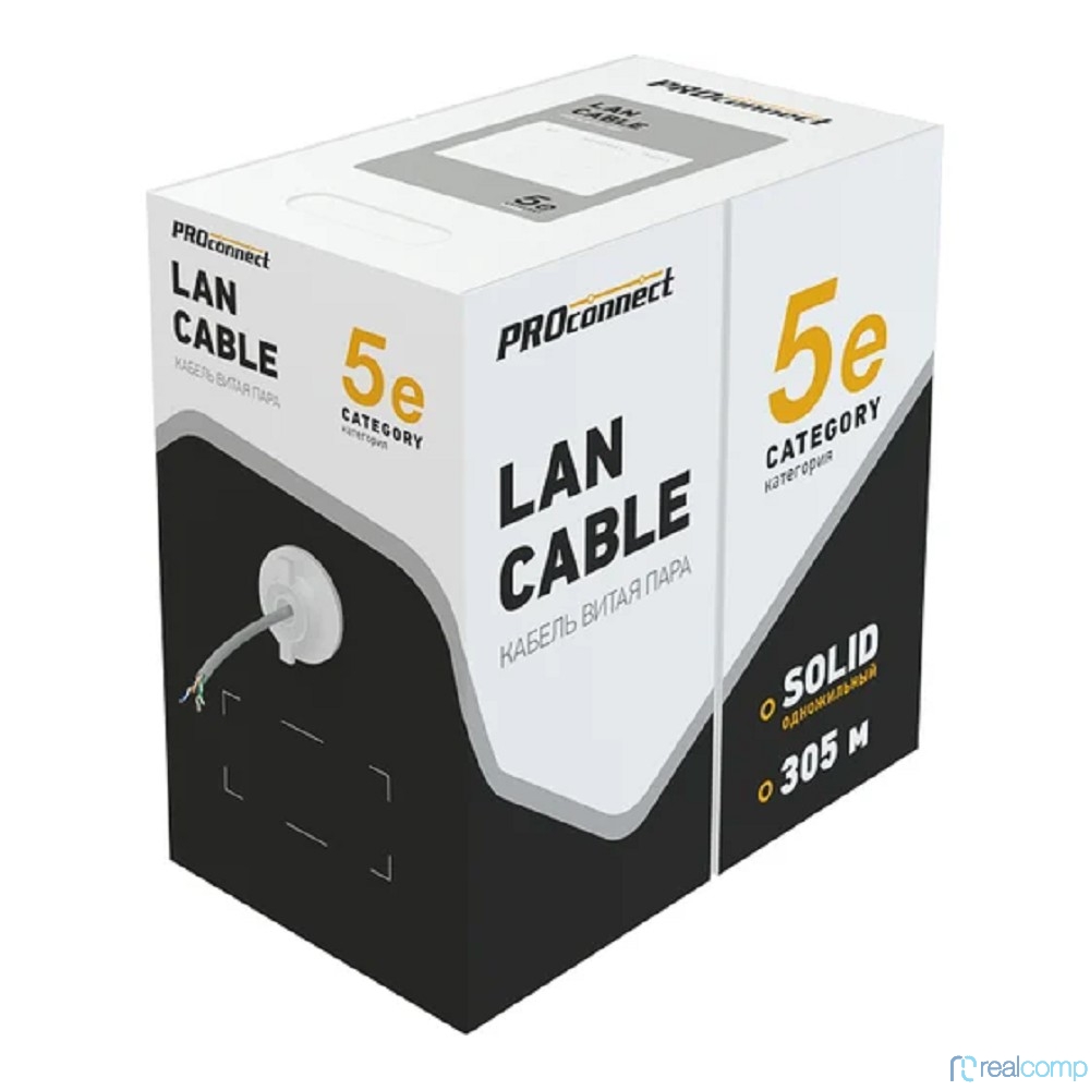Rexant (01-0052-R) Кабель витая пара U/UTP, CAT 5e, PVC, 4PR, 24AWG, INDOOR, SOLID, серый, 305м, серия LIGHT, РФ