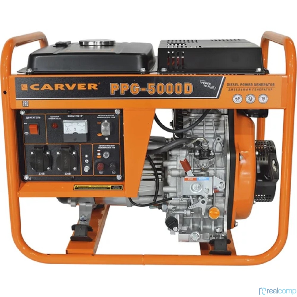 Генератор CARVER PPG - 5000D дизель [01.020.00050] { (LT-178F, 3,3/3,6 кВт, 220В, бак12.5л, медь) (12 шт/пал) }
