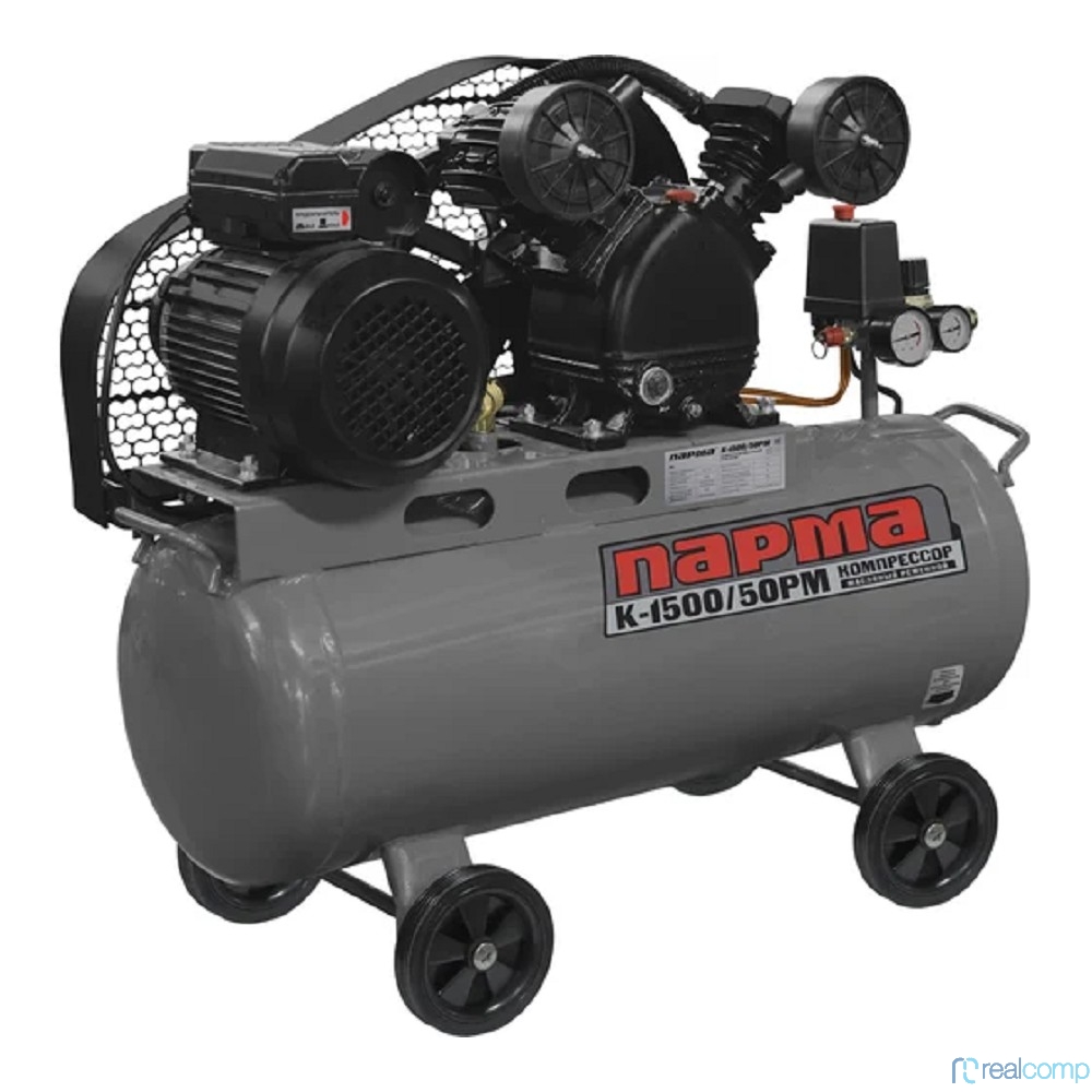 Компрессор Парма K-1500/50РМ [02.014.00006] { (масл. ременн.,1500Вт асинхр.,50л.,202л/мин,8 Бар, вых. 2шт/рапид)9ш/п }
