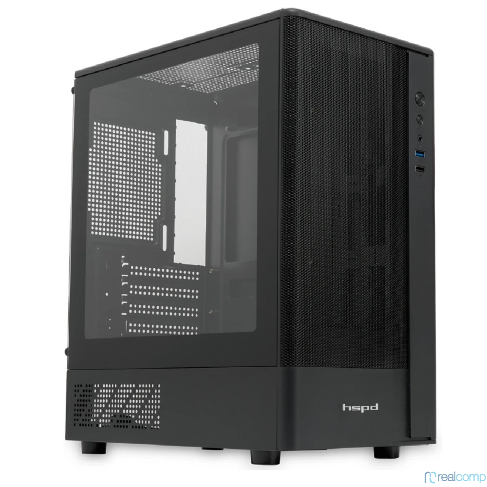 Case HSPD M332, Mesh Mini-tower, Black, TG, 0.4 SPCC, no fans, mATX, mITX, 160/285/170mm, 1x2.5", 1x3.5", 4xPCI, 1xUSB-A 3.0, 1xUSB-A 1.0, 387x197x325mm