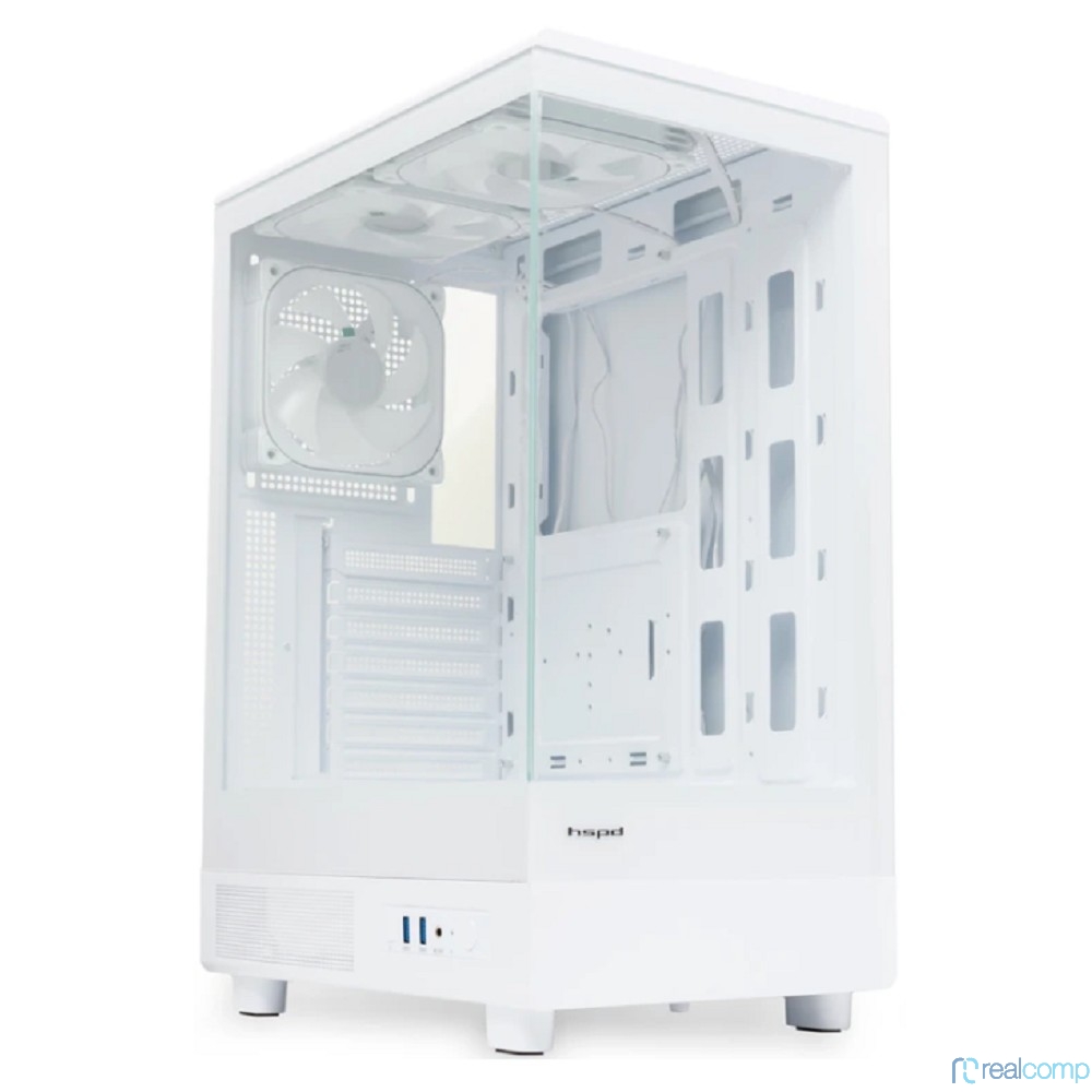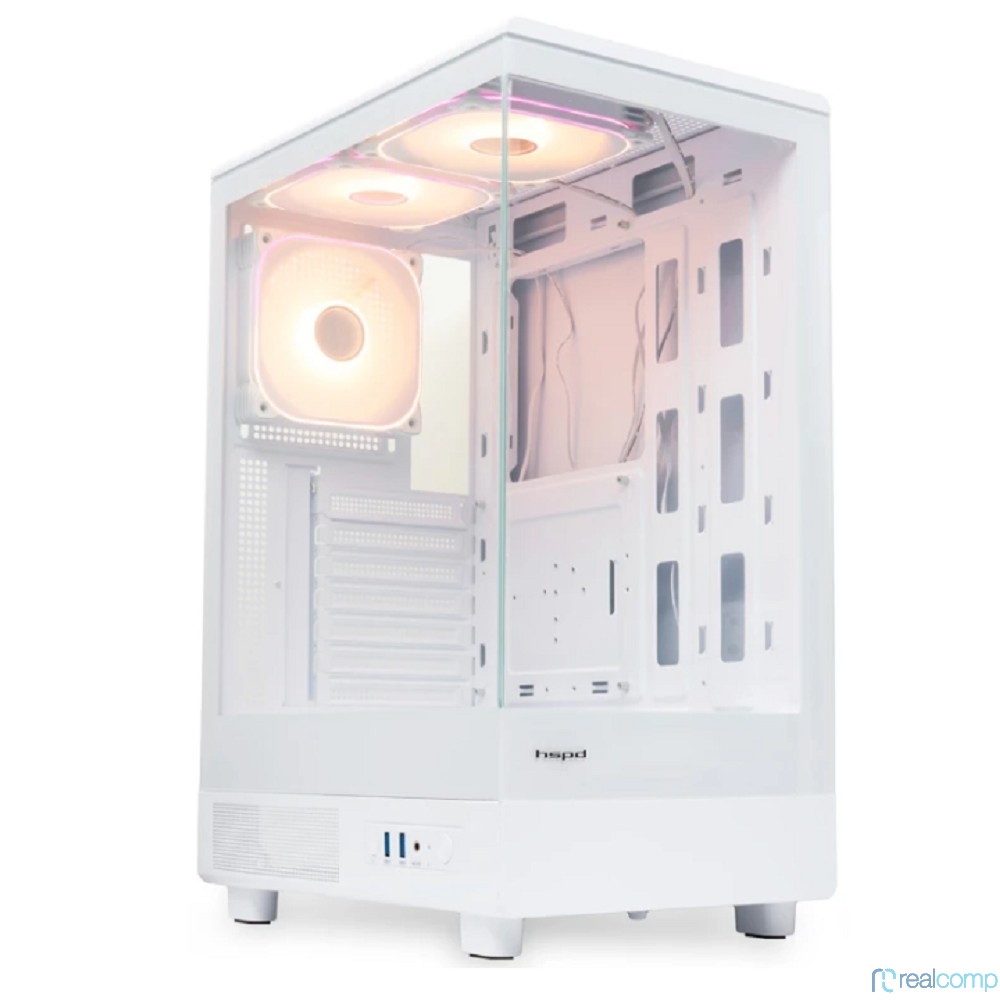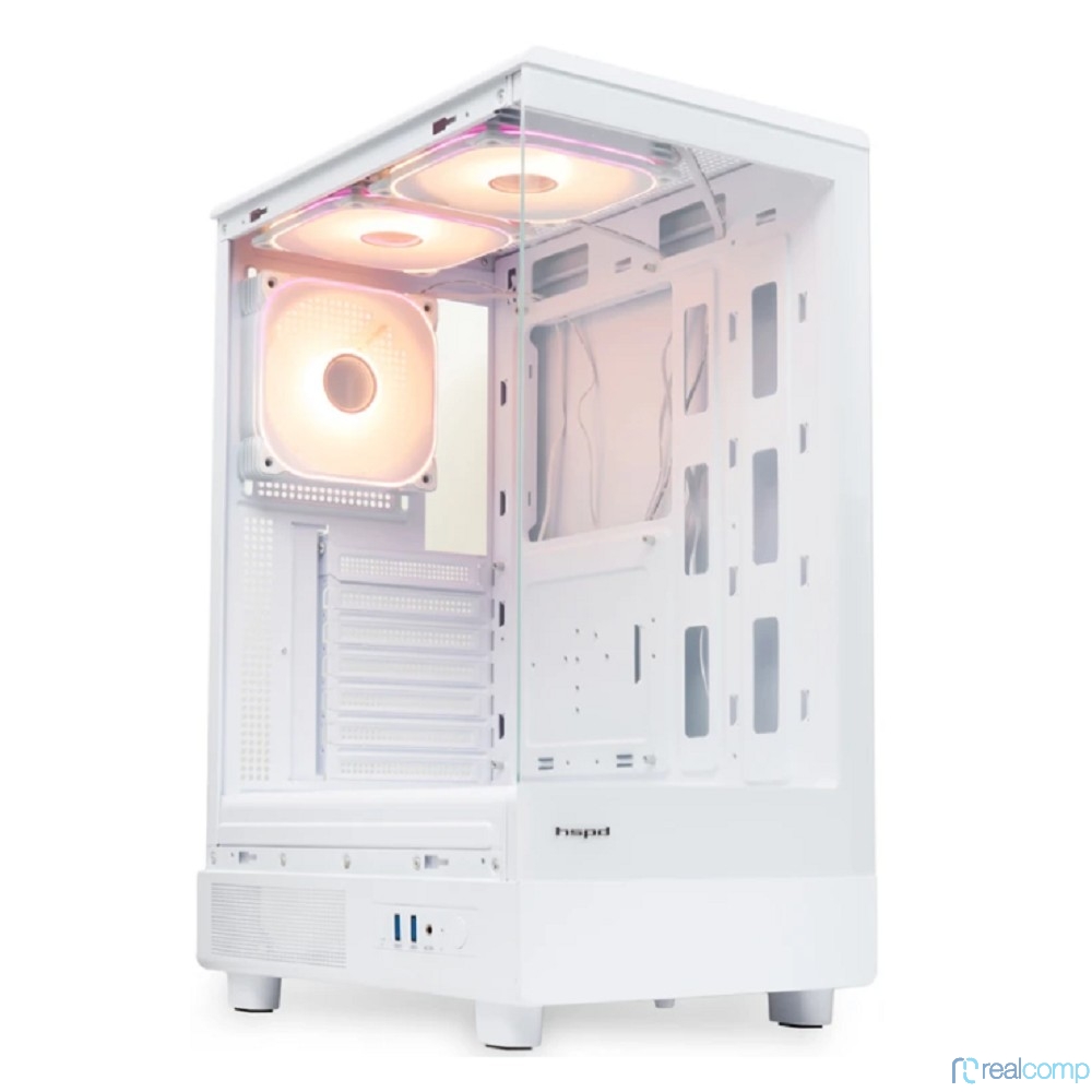 Case HSPD F510, Panoramic Mid Tower, White, TG, 0.5 SPCC, 3x120mm ARGB (FNW010) ATX, mATX, mITX 180/280/160mm 1x2.5", 1x3.5", 7xPCI 2xUSB-A 3.0 356x218x467mm