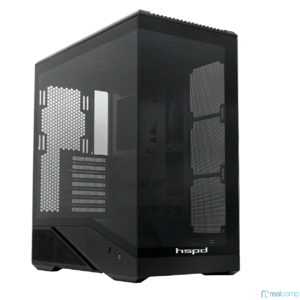 Case HSPD F711, Panoramic Full Tower, Black, TG, 0.7 SPCC, no fans ATX, mATX, mITX 190/420/280mm 2x2.5", 2x3.5", 7xPCI 1xUSB-A 3.0, 1xUSB-C 445x235x475mm