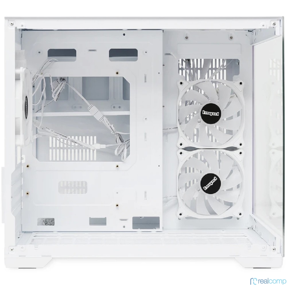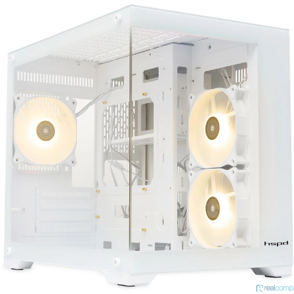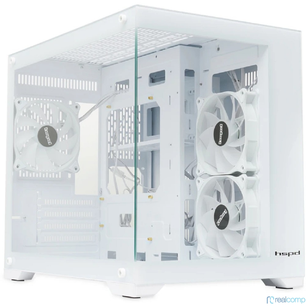 Case HSPD F330, Panoramic Mini-tower, White, TG, 0.5 SPCC, 3x120mm ARGB (FN027) mATX, mITX 160/400/200mm 1x2.5", 2x3.5", 4xPCI 1xUSB-C 3.0, 2xUSB-A1.0 428x280x375mm