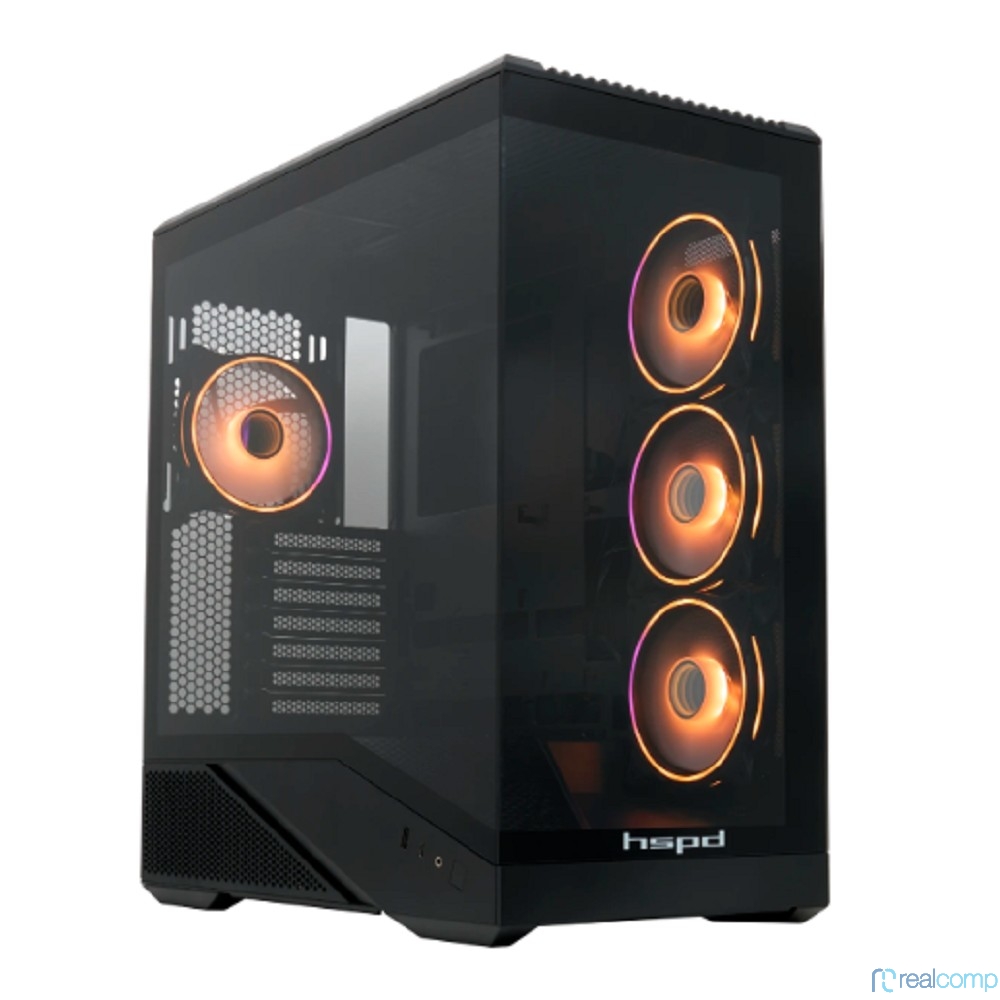 Case HSPD F711, Panoramic Full Tower, Black, TG, 0.7 SPCC, 4x120mm ARGB (FN027) ATX, mATX, mITX 190/420/280mm 2x2.5", 2x3.5", 7xPCI 1xUSB-A 3.0, 1xUSB-C 445x235x475mm