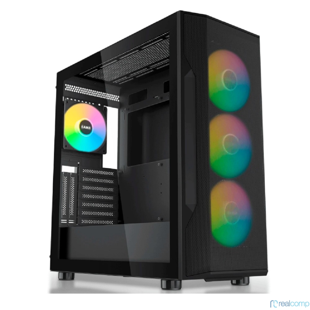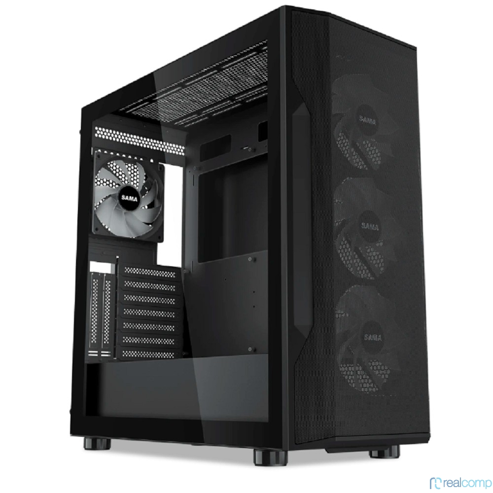 Case SAMA S40 Black, Midi-Tower, TG, 4x120mm ARGB, 2xUSB 3.0 + 1xUSB 3.1 Type-C, ATX, mATX, mITX Black