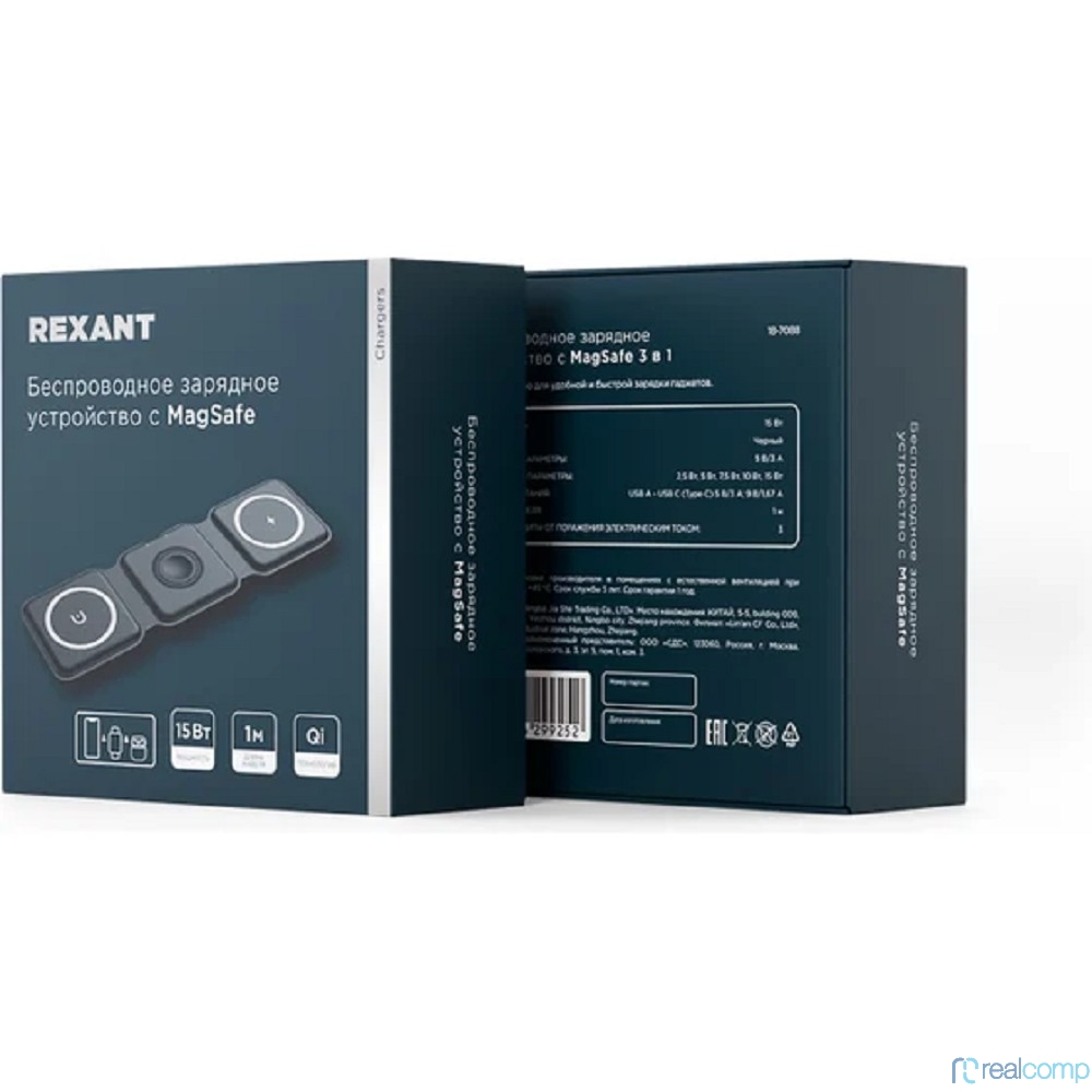 Rexant (18-7088) Беспроводное зарядное устройство с MagSafe 3в1, Qi, 15Вт, черный
