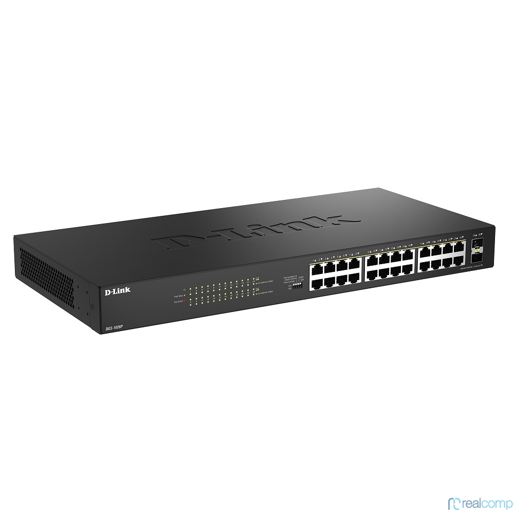 D-Link DGS-1026P/A1A Конфигурируемый коммутатор с 24 портами 10/100/1000Base-T, 2 портами 1000Base-X SFP и DIP-переключателем (24 порта PoE 802.3af/at, PoE-бюджет 240 Вт, дальность до 250 м)