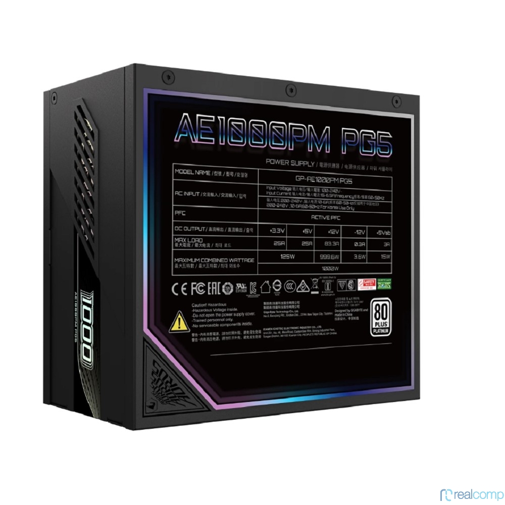 Блок питания ПК Gigabyte AE1000PM PG5 1000W, 80Plus, Platinum, Полностью модульный, PCIe Gen 5.1, ATX 3.0 compatible