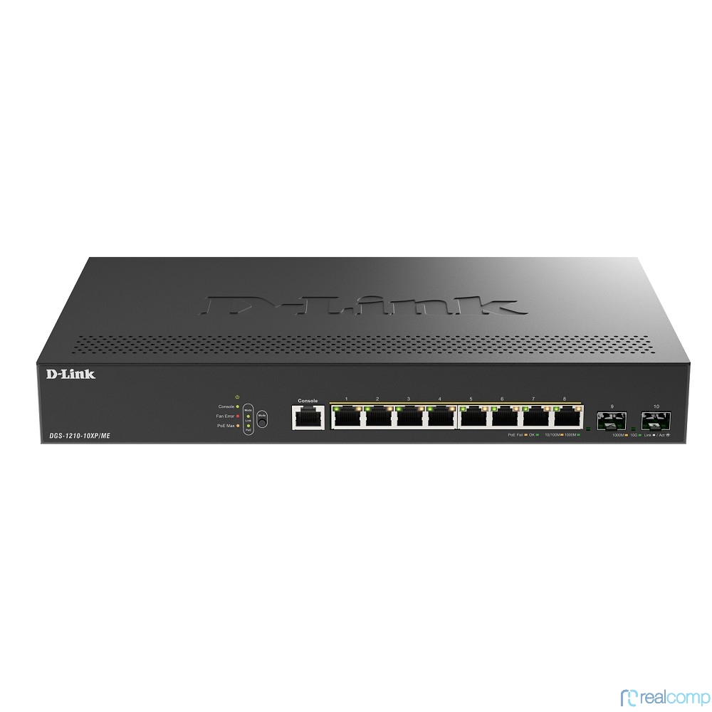 D-Link DGS-1210-10XP/ME/C1A Управляемый L2 коммутатор с 8 портами 10/100/1000Base-T и 2 портами 10GBase-X SFP+ (8 портов PoE 802.3af/at, PoE-бюджет 240 Вт)