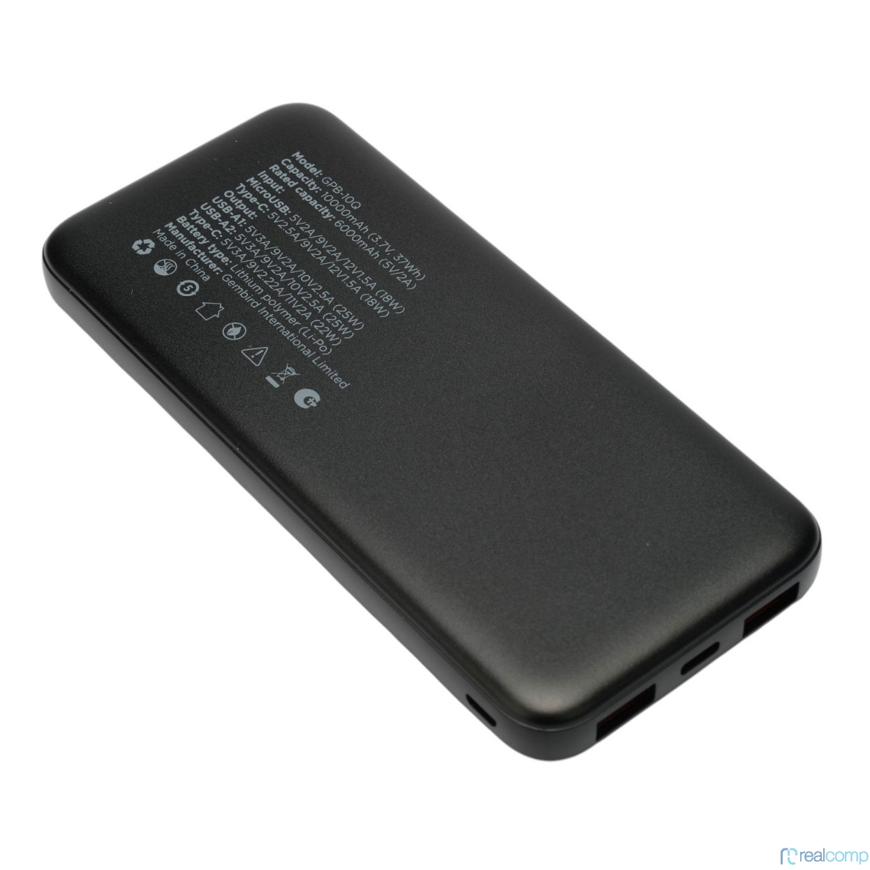Gembird Портативный аккумулятор, 10000мАч, QC/PD, дисплей, черный (GPB-10Q)