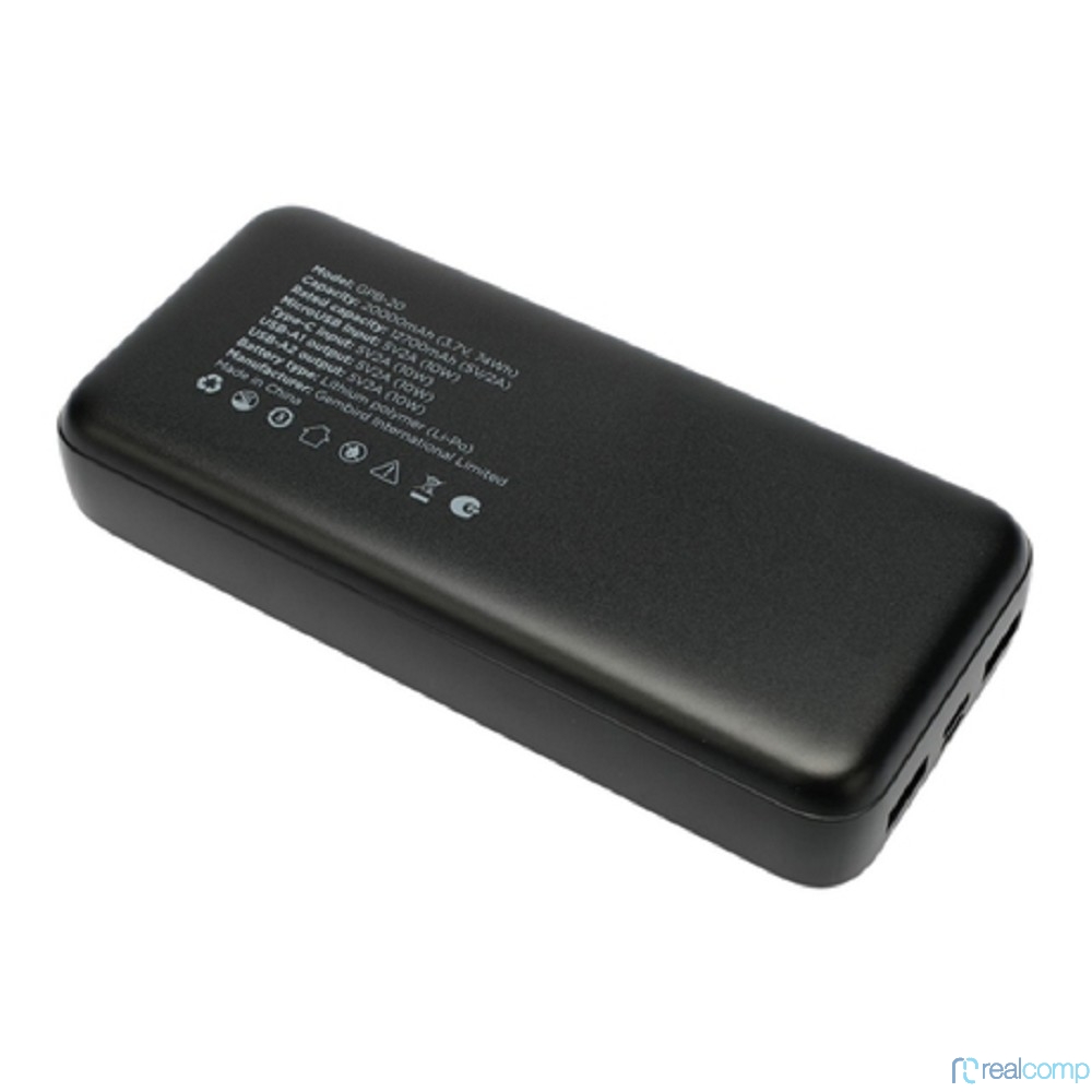Gembird Портативный аккумулятор, 20000мАч, 2A, черный (GPB-20)