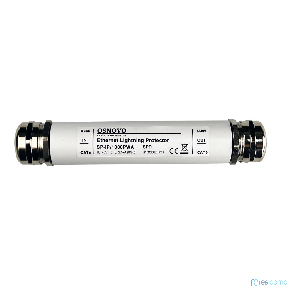 Грозозащита/ OSNOVO Уличное устройство грозозащиты для локальной вычислительной сети (скорость до 1000 Мб/с) с защитой линий PoE (SP-IP/1000PWA)