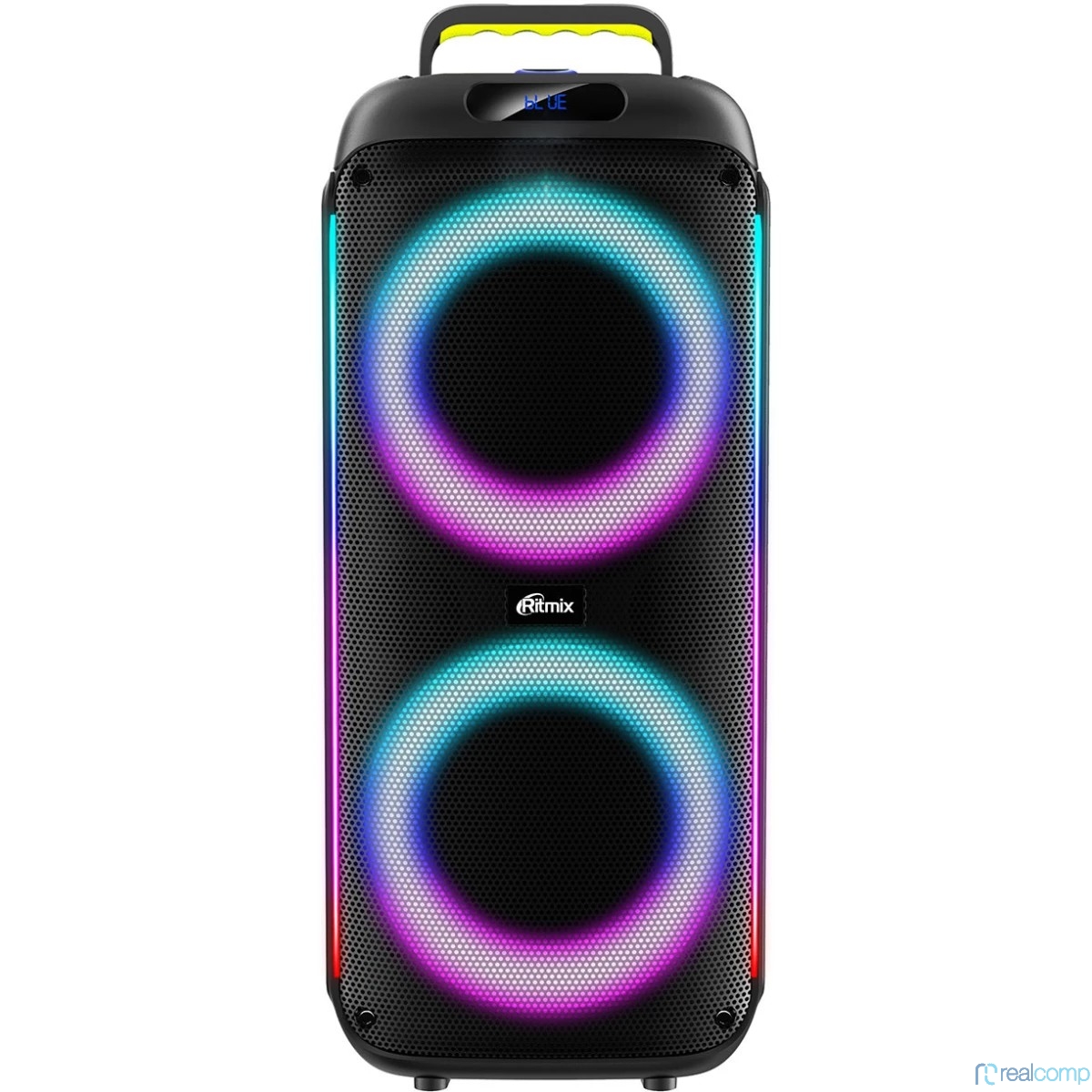 RITMIX SP-640B черный {Bluetooth, FM-радио, RGB-подсветка, AUX, USB, microSD (до 32 Гб, MP3), дисплей: LED, до 6 часов, вход: Jack 6.3 мм, Jack 3.5 мм}