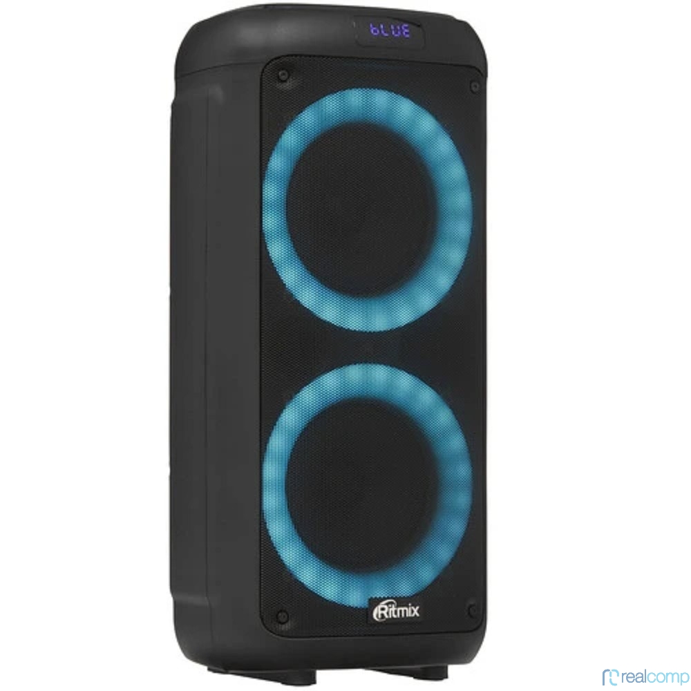RITMIX SP-875B black {Bluetooth, 30 Гц -18 КГц, FM-радио, RGB-подсветка, AUX, USB, microSD (до 32 Гб, MP3), дисплей: LED, до 6 часов, вход: Jack 6.3 мм, Jack 3.5 мм, USB, 3600 мАч}