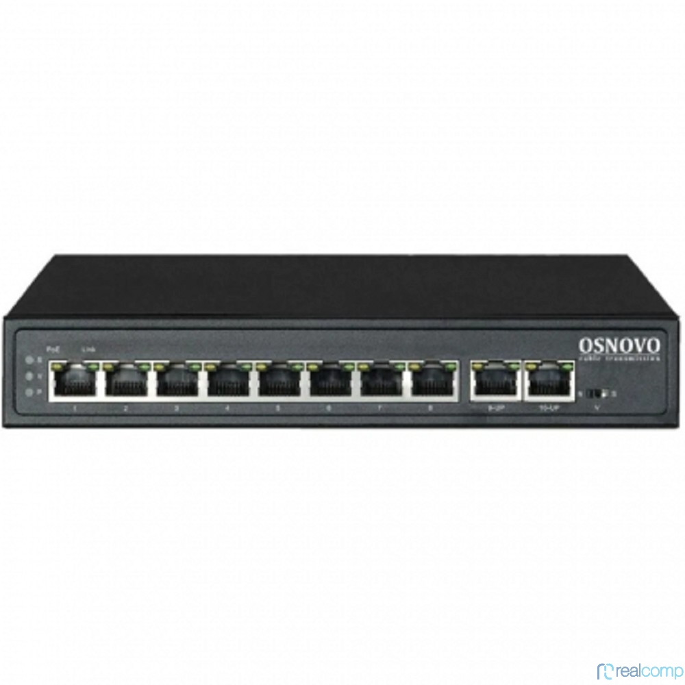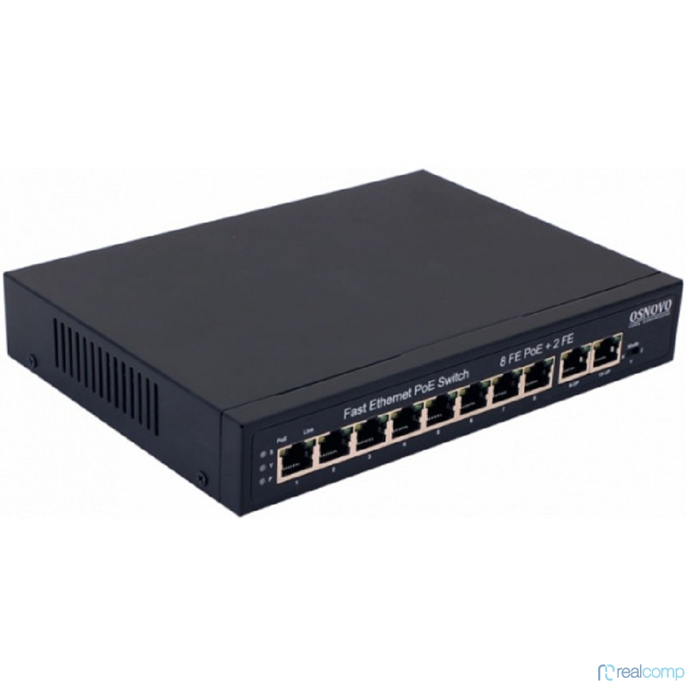 Коммутатор PoE OSNOVO SW-21000(120W) на 10 RJ45 портов, 8 x FE (10/100 Base-T) с поддержкой PoE (IEEE 802.3af/at), 2 x FE (10/100 Base-T). Соответству