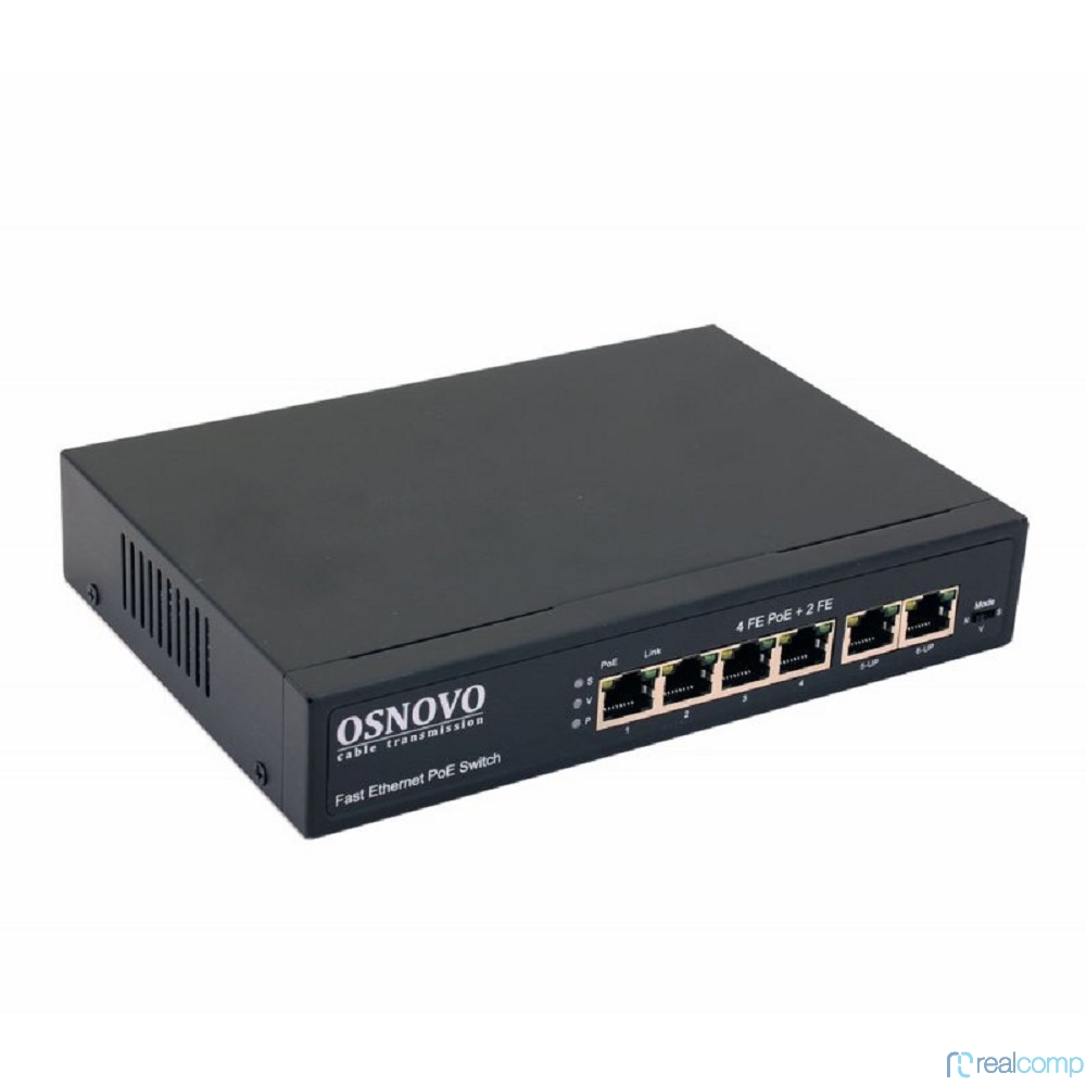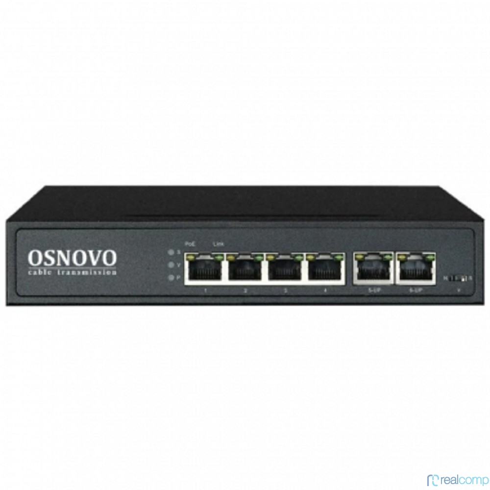 Коммутатор/ OSNOVO PoE коммутатор 6 портов, 4 PoE порта 10/100 Base-T, 2*10/100 Base-T Uplink, до 30W на порт, суммарно до 80W (SW-20600(80W))